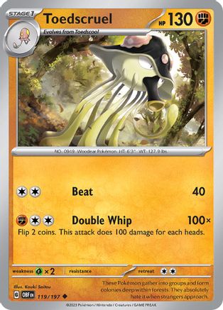 Toedscruel 119/197 - Reverse Holofoil SV03 Obsidian Flames - Uncommon